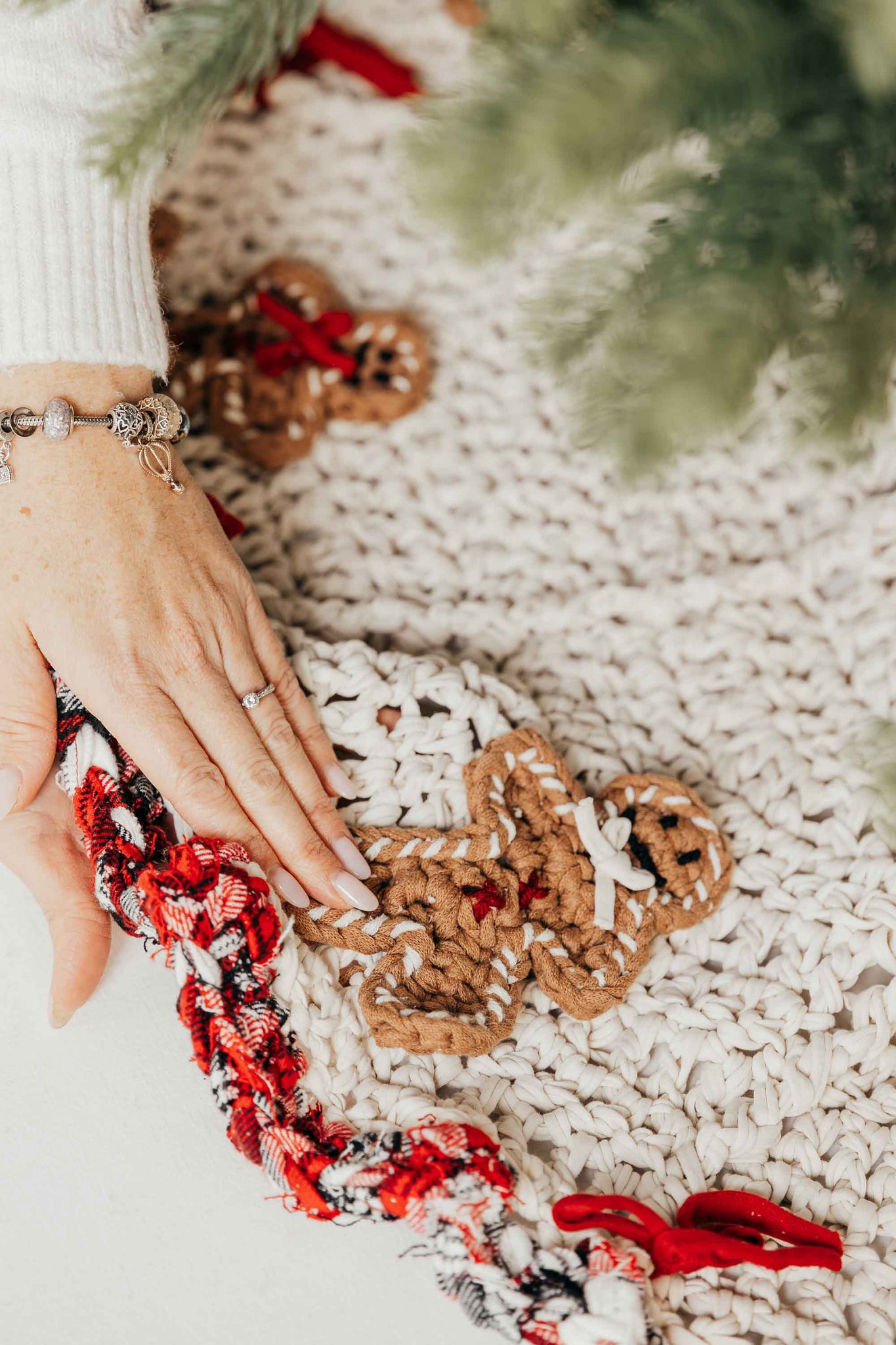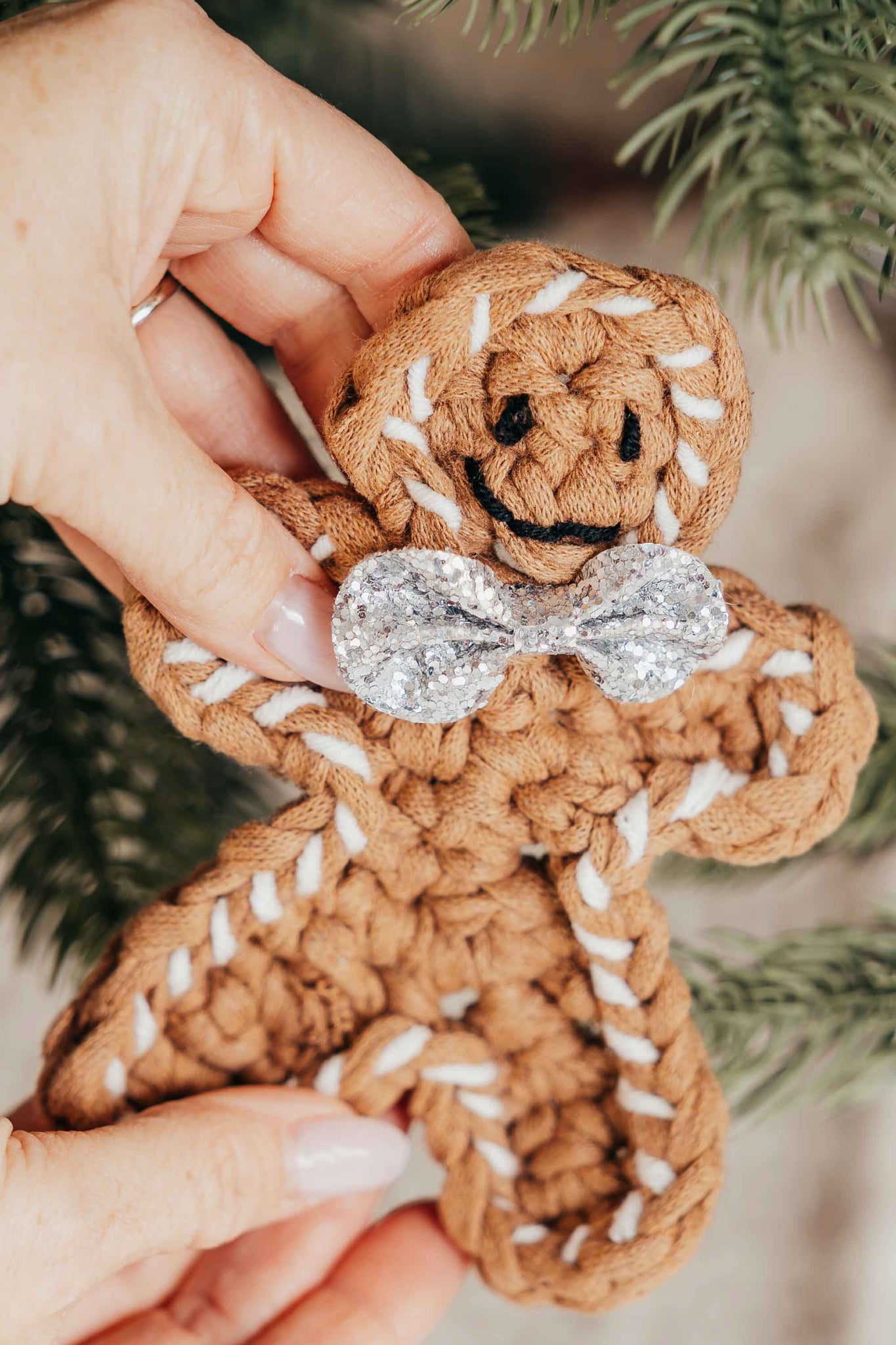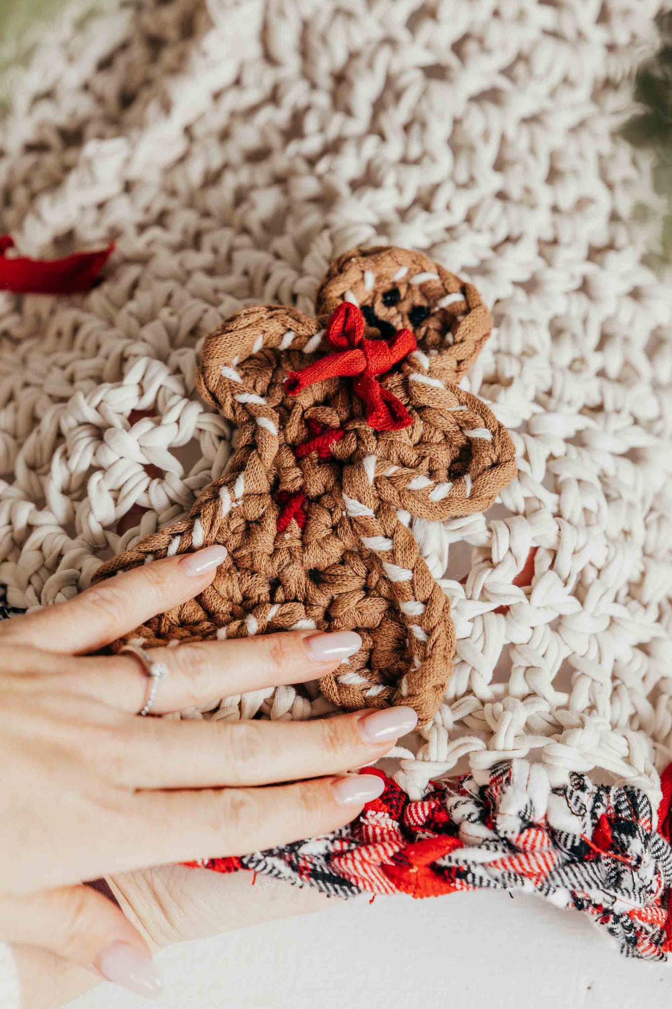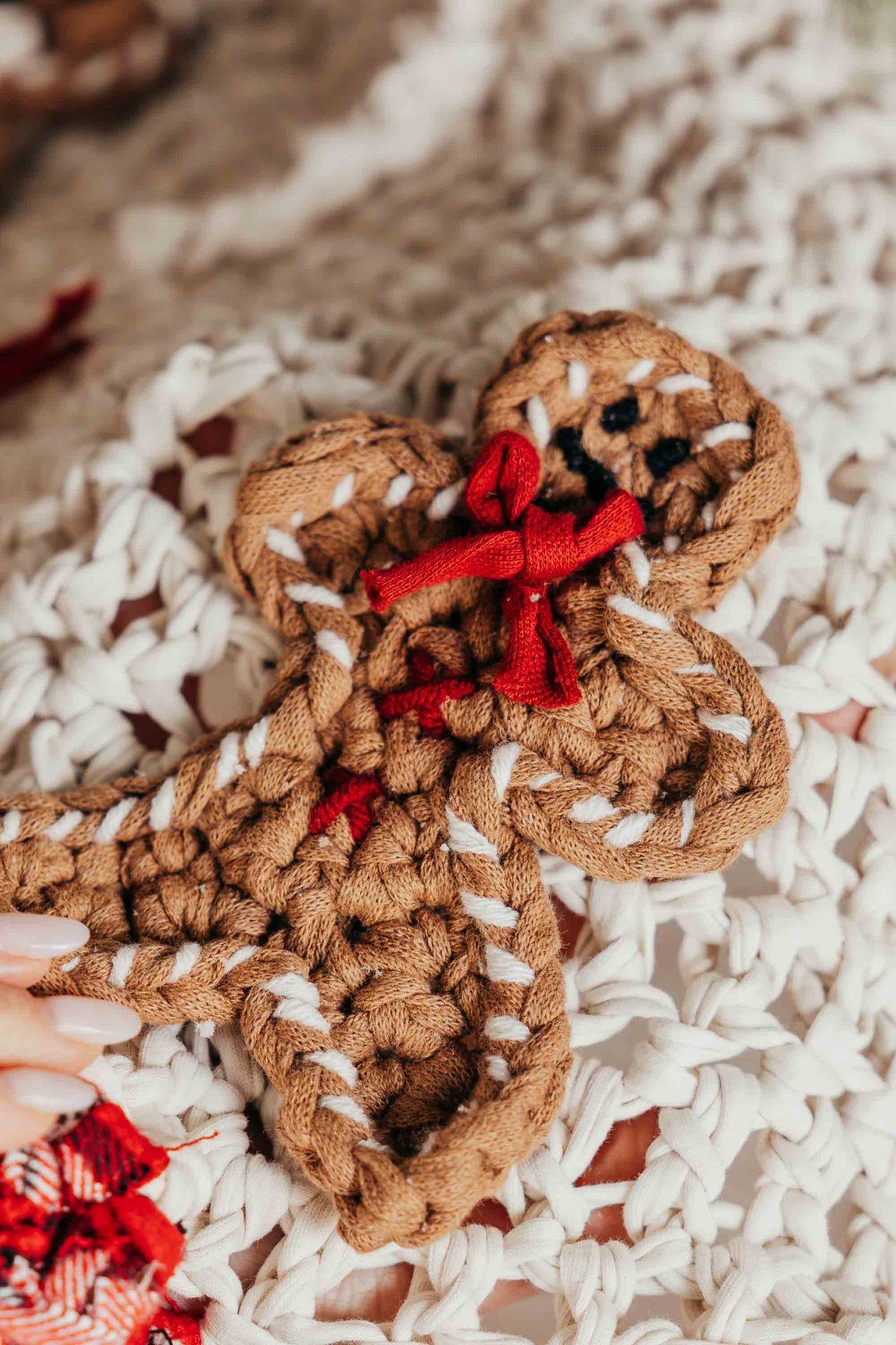 Who doesn't love gingerbread men?! Make your own with recycled t-shirt yarn and decorate your Christmas tree, a wreath, put them on your tree skirt, or give them as little gifts with candy canes!
