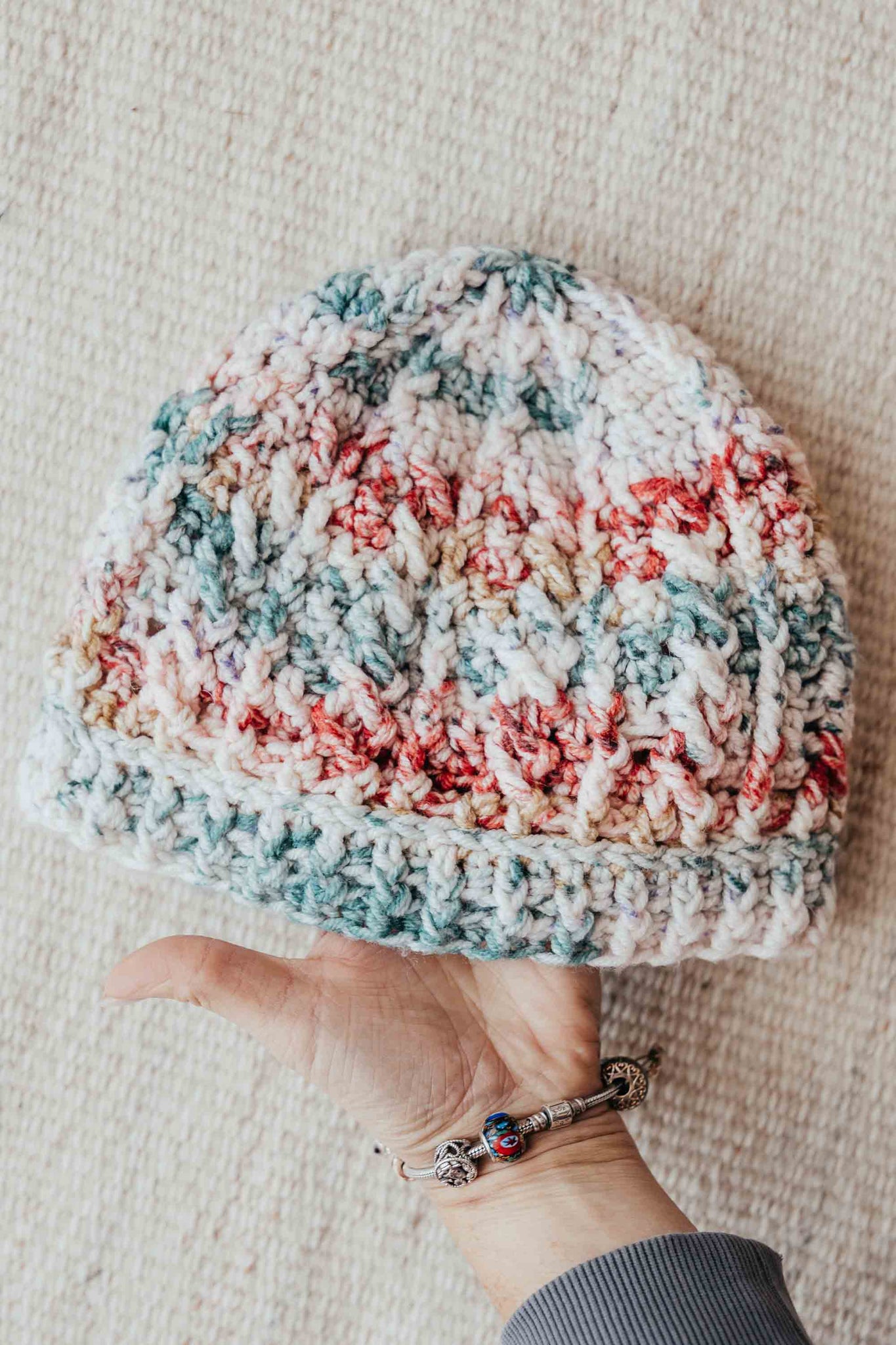 MATERIALS NEEDED: 1 skein of worsted weight/aran weight/10 ply yarn (around 230yds), and size H/5mm hook