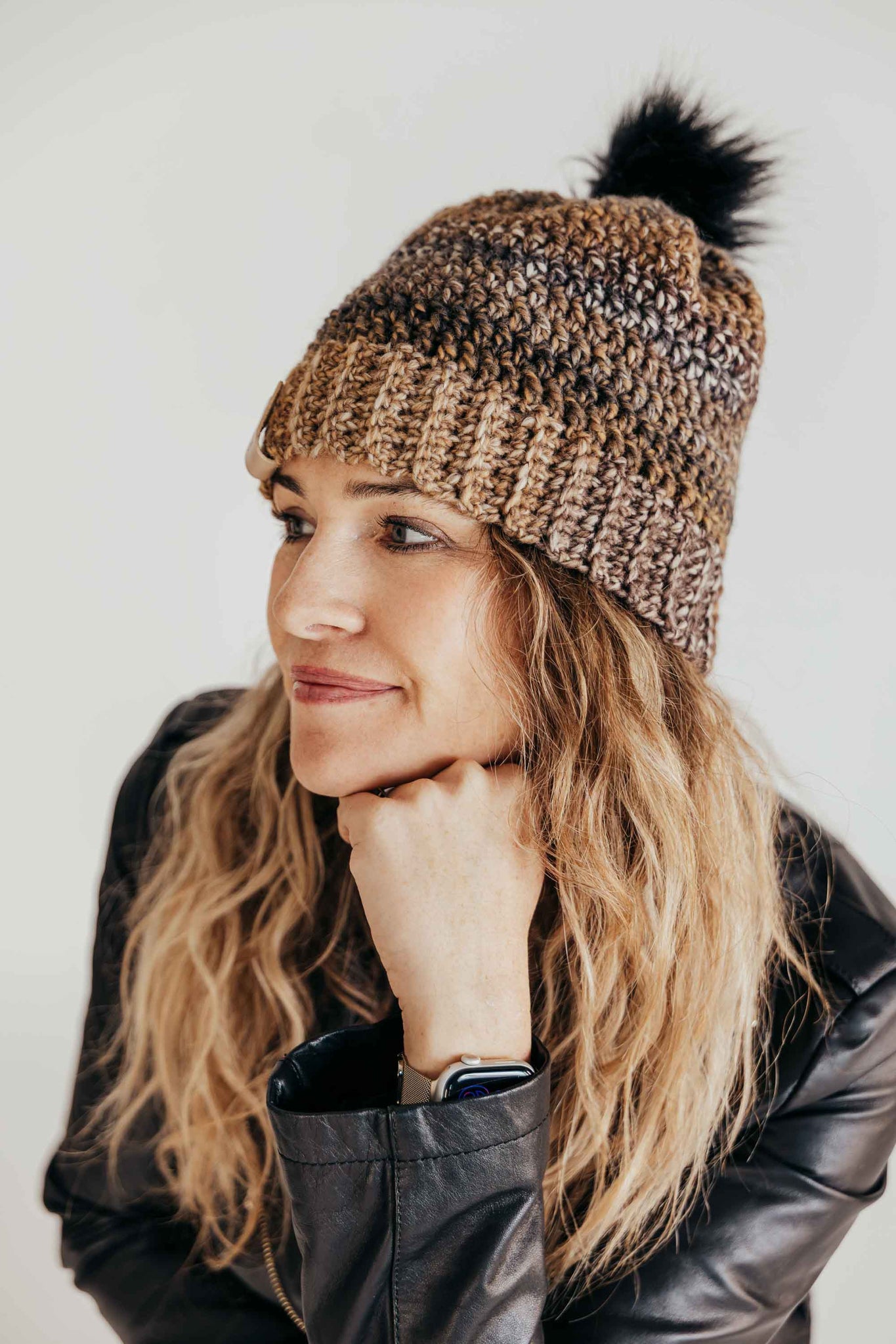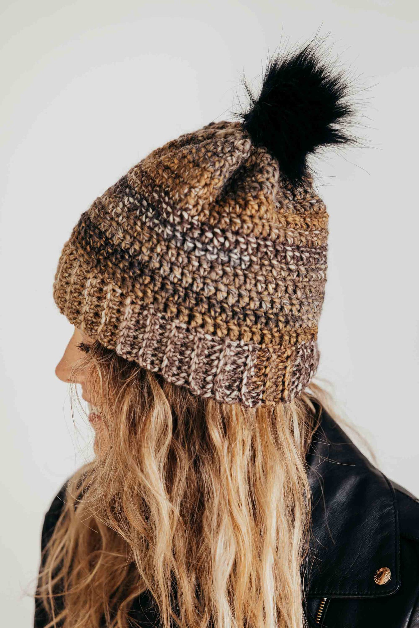 This easy crochet slouchy beanie with a brim is the perfect pattern for those who are beginner crocheters!